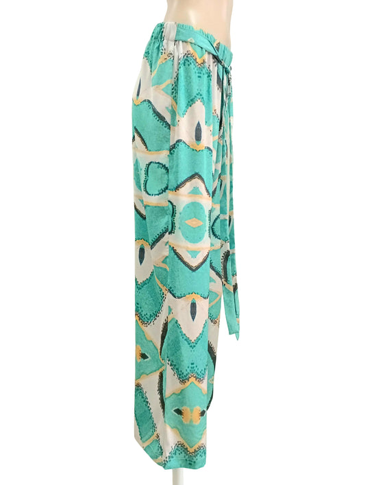 Electric Butterfly Silky Satin Straight Leg Pants