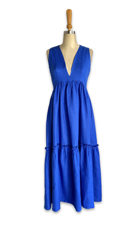 Alecia Long Tier Dress - Linen - Cobalt Crush