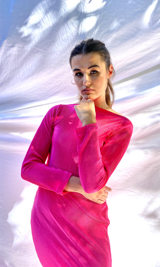 Svelte Sheathe Dress in Plisse - Fuchsia Pink