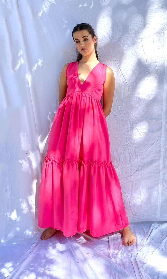 Alecia Long Tier Dress - Fuchsia Pink