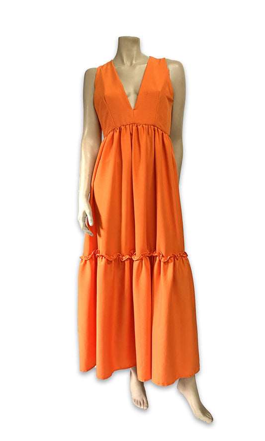 Alecia Long Tier Dress - Tangerine